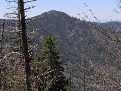 Mount Chapman reaches an elevation of 6,427 feet with steep slopes covered in dense Southern Appalachian spruce-fir forest extending to the Little Pigeon River.