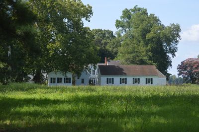 The Federal period central section of the house displays architectural elements by local builder Richard Billups, including an Ionic order portico.