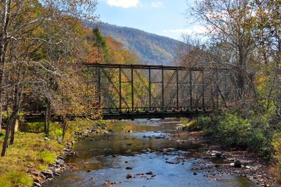 Wolf Creek Bridge, Metal Pratt truss railway bridge in Rocky Gap, United States