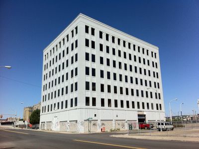 The Film Exchange Building is a seven-story Art Deco structure standing at the corner of Cass Avenue and Montcalm Street, distinguished by its sculptured entry and marble lobby. The building contains fireproof vaults, screening rooms, and office spaces that were specifically designed to handle film inspection and storage operations.