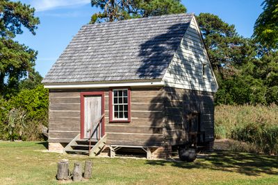 This structure stands as one of only two known buildings in Virginia constructed with a wooden chimney, making it a rare example of early American architecture.