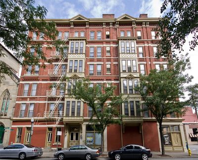 Thomas Emery's Sons, a leading Cincinnati real estate developer, constructed this six-story rectangular structure with brick walls and sandstone elements in 1885.
