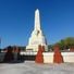 The white marble mausoleum features an obelisk structure with columns and surrounds a central burial area designated for firefighters and heroes.
