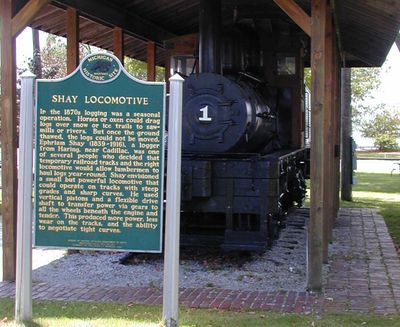 Visitors can examine this preserved Shay locomotive at the intersection of South Lake Street and West Cass Street in Cadillac's City Park.