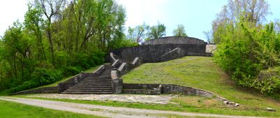 The Works Progress Administration constructed grand limestone staircases in 1936 that remain standing within the park grounds today.