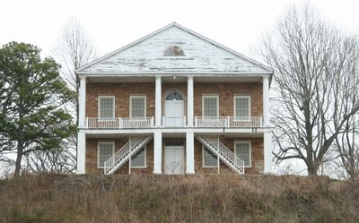 The Thebes Courthouse stands on Oak Street, overlooking the Mississippi River with its classic governmental architecture from the 19th century.