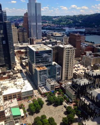 The Gardens at Market Square reaches 18 floors and combines office spaces, retail areas, and an integrated parking facility in downtown Pittsburgh.