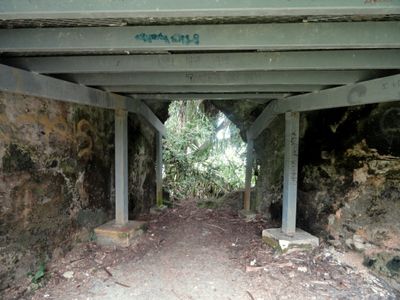 A fortified bunker and 40mm gun emplacements at Ga'an Point remain as physical evidence of the Japanese defensive positions.