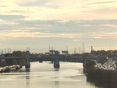 Metal mesh panels along the bridge's sides were designed to display illuminated images visible to drivers on the Schuylkill Expressway until 2017.