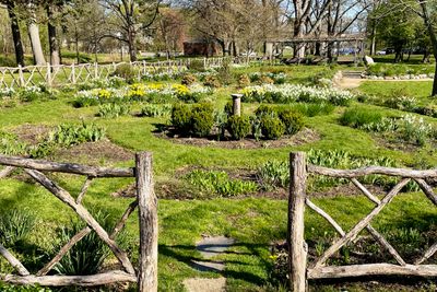 The Shakespeare Garden contains plants mentioned in the works of William Shakespeare and receives care from the Plainfield Garden Club.