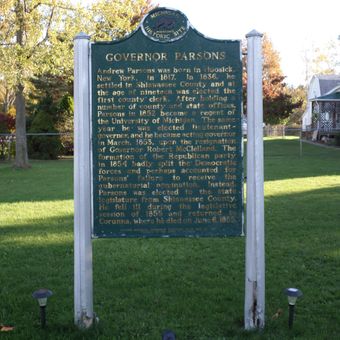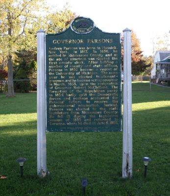 Governor Andrew Parsons Historical Marker, park in Shiawassee County, Michigan, United States of America