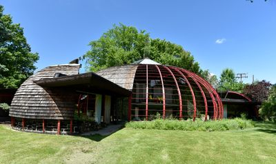 The residence demonstrates the integration of organic architecture principles through its dome shape and incorporation of Quonset hut ribs in the frame construction.