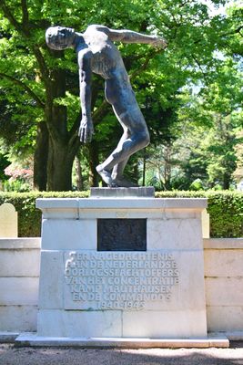 The Falling Man, sculpture by Cor van Kralingen at Netherlands war cemetery section, Kommunalfriedhof Salzburg, Austria