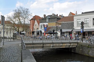 Predikherenbrug, puente de carretera en el centro histórico de Brujas, Bélgica