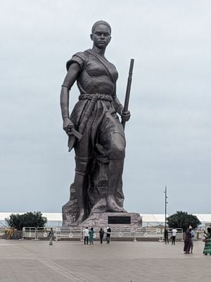 The statue commemorates the Dahomey Amazons, an all-female military regiment that served the Kingdom of Danxome until the late nineteenth century.