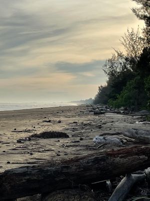 The long stretch of sandy shore at Belait Beach extends along the South China Sea coast, offering wide spaces for recreational activities.