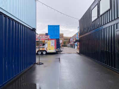 Each retail container includes both garage door and person-door access, allowing vendors to create individual spaces that reflect their business requirements.