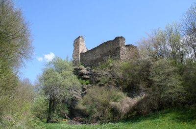 Visitors can reach the castle ruins through marked hiking paths, with information panels explaining the historical development of the fortification.