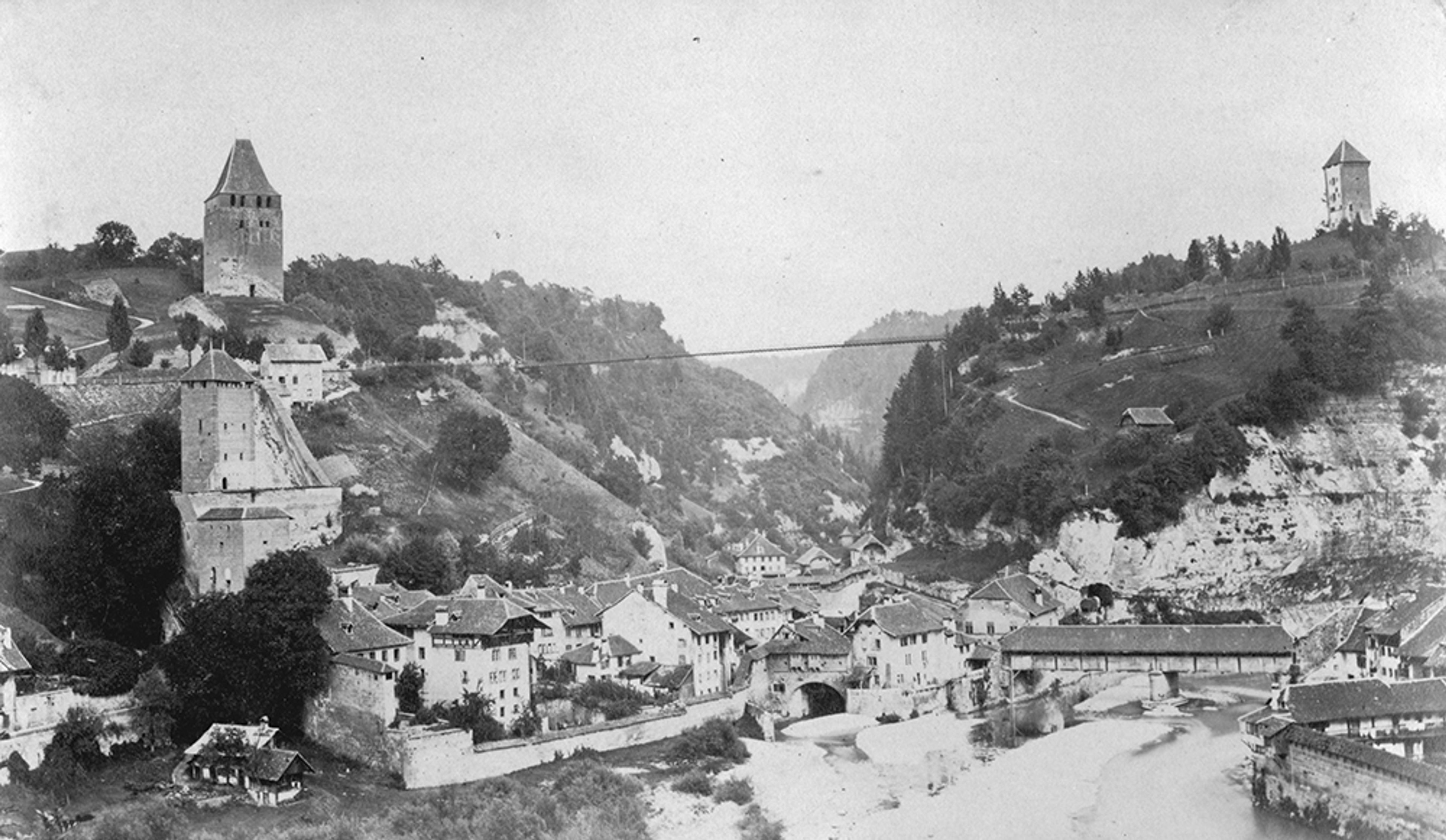 Gottéron Bridge, dismantled suspension bridge over the Galtera in the city of Fribourg, Switzerland
