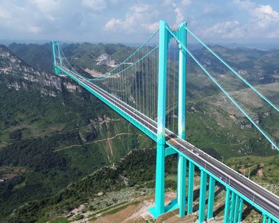 Huajiang Canyon Bridge, highest highway suspension bridge in Guizhou Province, China and the world