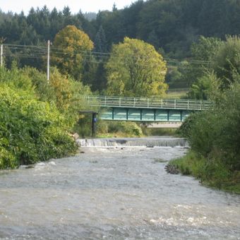 Horní most silnice III/05726 v Bystřičce přes přeliv z vodní nádrže Bystřička