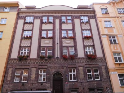 Pamětní deska obětem 2. světové války na domě V Háji 1243/35 v Holešovicích