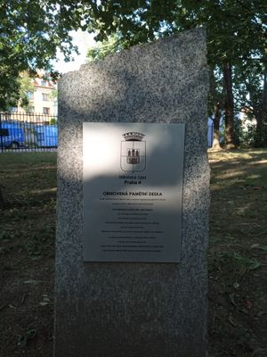 Pamětní deska obětem masakru na zahradě Brettschneiderovy vily v Praze