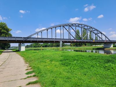 Railway bridge over the Elbe in Neratovice, most přes Labe a přes pobřežní stezky