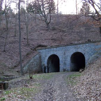 Propustek pod železniční tratí v Senohrabech poblíž ulice Na požáru