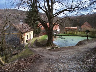 Lower pond in Koda, dolní mlýnský rybníček, s obezdívkou