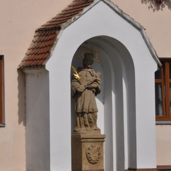 Chapel of Saint John of Nepomuk in Předklášteří, výklenková kaple se sochou v Předklášteří u jižní stěny domu Uhrova čp. 1003