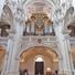 Five separate organs with 17,774 pipes and 233 registers form the complete organ system inside the white-towered cathedral with blue-green domes.