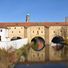 The Stadtbrille, a fortified bridge structure spanning the Vils River, creates a reflection in the water that resembles a pair of eyeglasses.