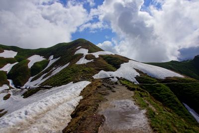 The mountain trails were established during the early development of Alpine tourism in the region, connecting traditional mountain settlements through marked paths.