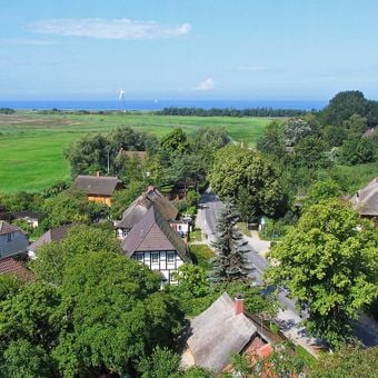 Wustrow is a small coastal municipality on the Baltic Sea in the Vorpommern-Rügen region, stretching along several kilometers of shoreline. The landscape consists of natural beaches, flat terrain, and is located on a peninsula between the Baltic Sea and a lagoon.