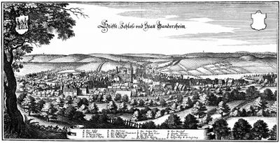 Gandersheim Abbey, established in 852 by Duke Liudolf of Saxony, formed the foundation of the settlement and received market rights in 990.