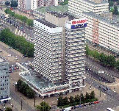 Haus des Reisens, Office building at Alexanderplatz, Berlin, Germany.