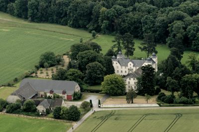 The stone walls and towers of Eggeringhausen Castle rise against the rural landscape of North Rhine-Westphalia, marking centuries of architectural craftsmanship.