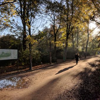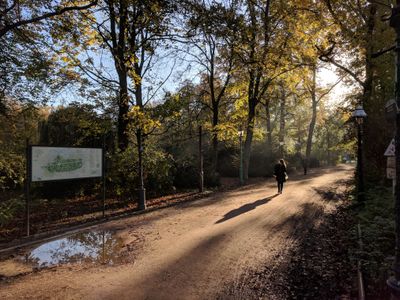 The open-air museum displays 90 historical gas lanterns from German cities, arranged along pathways in Berlin's Tiergarten park.