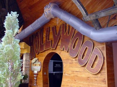 The Hollywood Tour combines water and dark ride elements through a 340-meter track, featuring multiple cinematic scenes in an underground setting beneath a roller coaster.