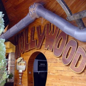 Hollywood Tour is a dark boat ride at Phantasialand featuring multiple film scenes along a 340-meter track in an underground setting. The ride operates with 15 boats, each carrying 20 passengers and traveling at 2 kilometers per hour.