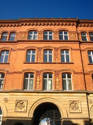 After World War II damages, the remaining front section received heritage protection status and underwent complete restoration work in 2006.