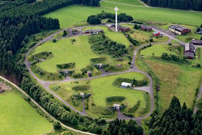The Nike-Feuerstellung Oedingen spans 16.08 hectares and contains three rocket halls with launch pads and service team bunkers for missile operations.