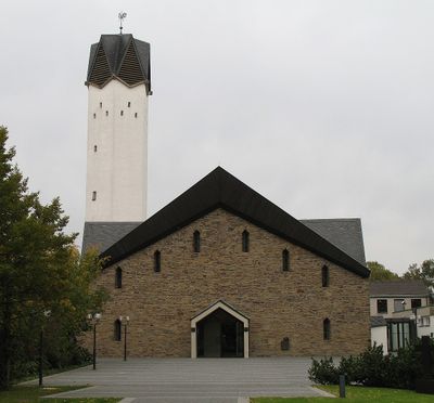 St. Katharina stands as a regional church with traditional architectural elements, including stone walls and high windows that illuminate the interior space.