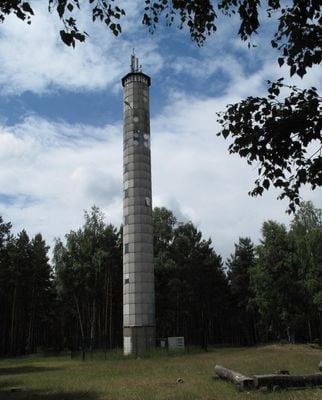 Visitors can climb 113 metal steps to reach the 22-meter-high observation platform, which offers views of Potsdam, Berlin TV Tower, and Kloster Lehnin.
