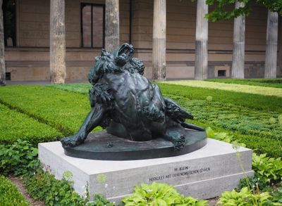 Hercules and the Nemean Lion, Bronze sculpture in Kolonnadenhof, Germany.