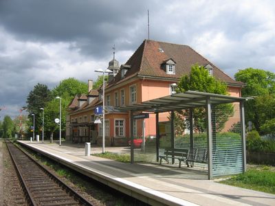 The station building maintains its protected status as a German cultural heritage monument, representing the architectural standards of late 19th-century railway construction.
