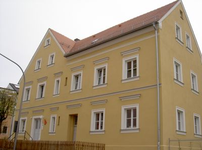 Vohenstrauß Asylstraße 1, mitte 19. Jahrhundert, Satteldachbau mit Steingewänden; zusammen mit Bahnhofstraße 17