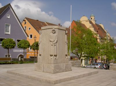 Kriegerdenkmal, 1935 nach Entwurf von Otto Dörfler, Steinaufbau mit Kriegerfigur