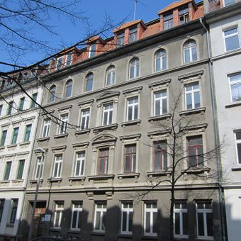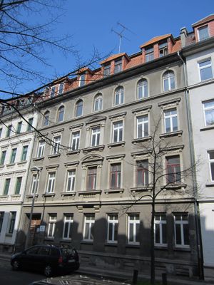 Mietshaus Schulze-Delitzsch-Straße 17, Mietshaus in geschlossener Bebauung mit Tordurchfahrt; Putzfassade, schöne Holzverkleidung in der Tordurchfahrt